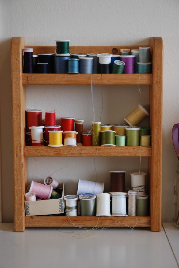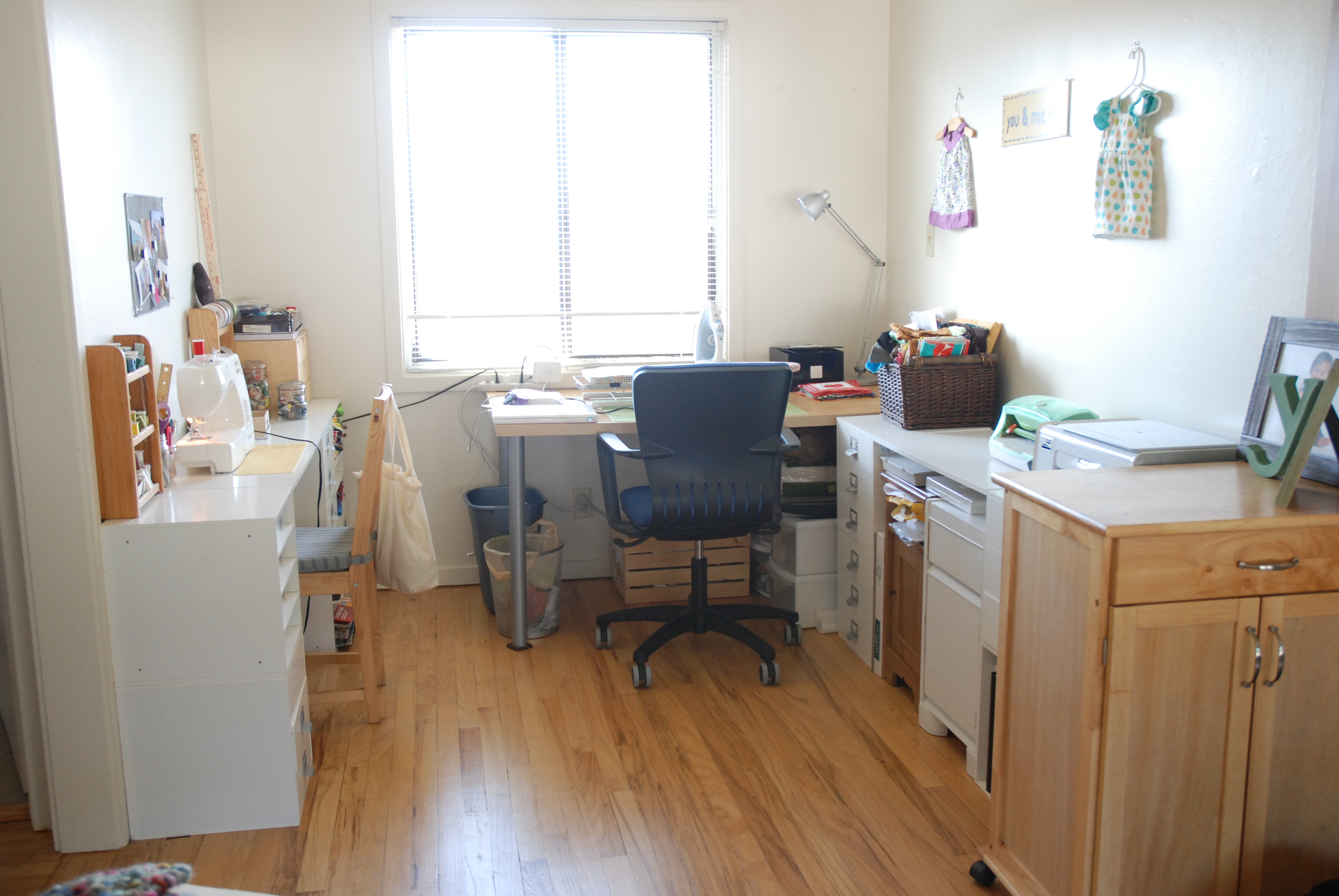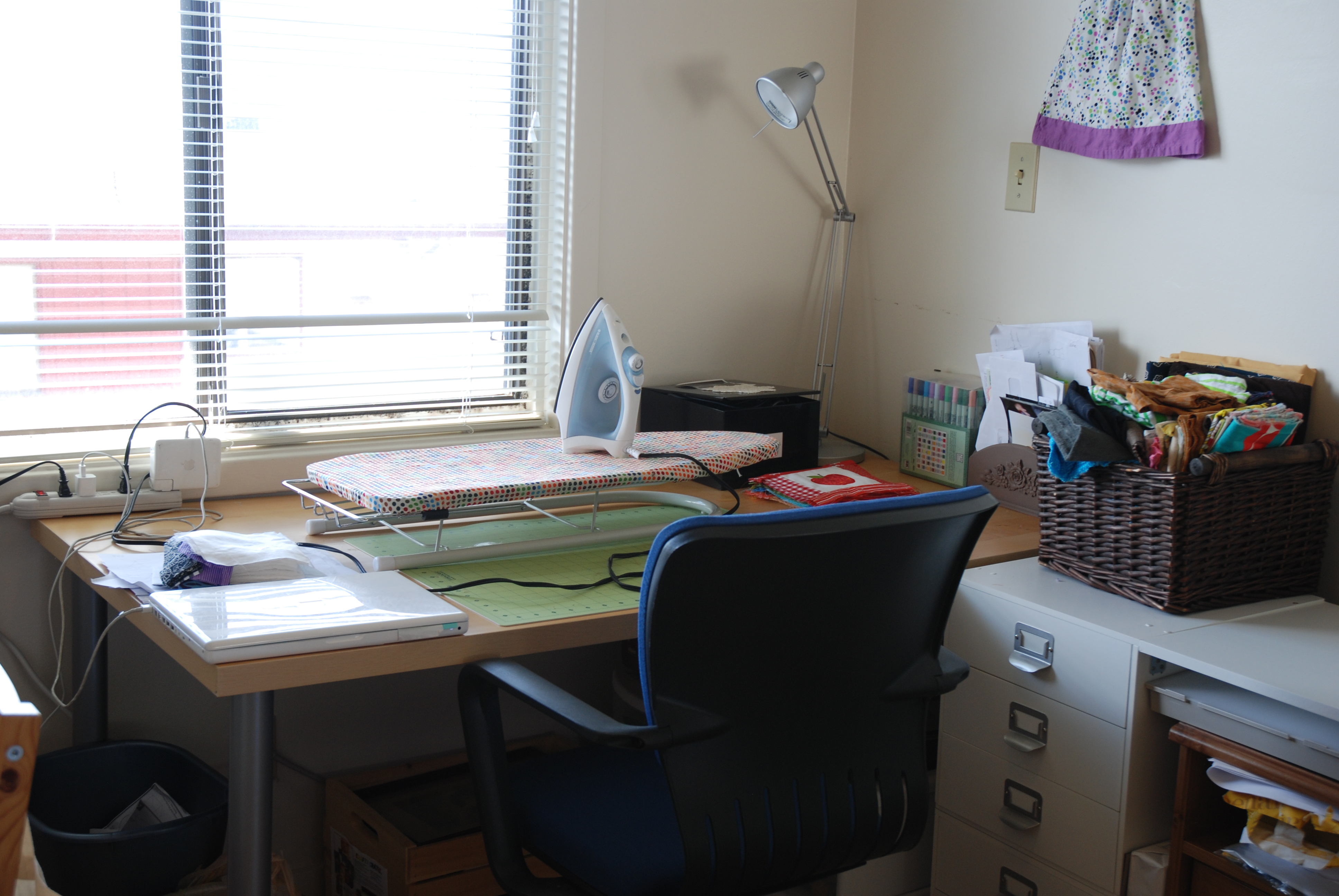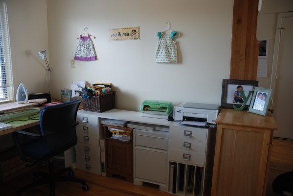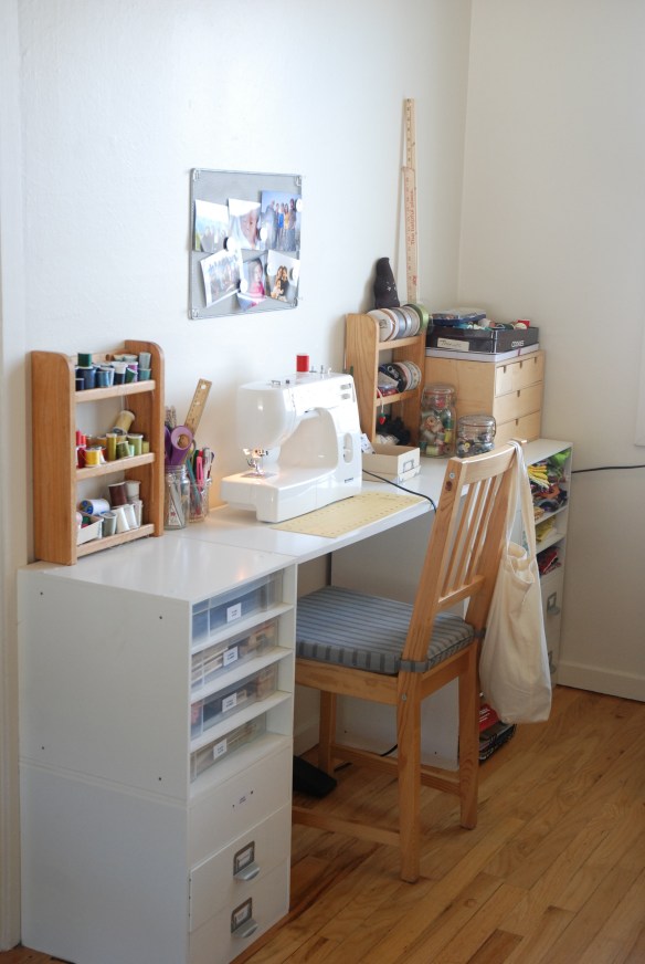 I LOVE my new crafting area – I’m still in disbelief that I get all this space!! I guess Hideko was tired of seeing me hunched over on the floor. Although, I do enjoy working on the floor sometimes, this is definitely an appreciated upgrade. Not only is the space a gift, they cleaned up EVERYTHING for me! I will not deny it, I am a total slob. Before yesterday, there were piles of fabric, patterns, unfinished projects, clothes and other crap all over this office space. Sanjai was shocked that I could get anything done in that mess. Now I have to work really really hard to keep this place clean so I can use it efficiently.