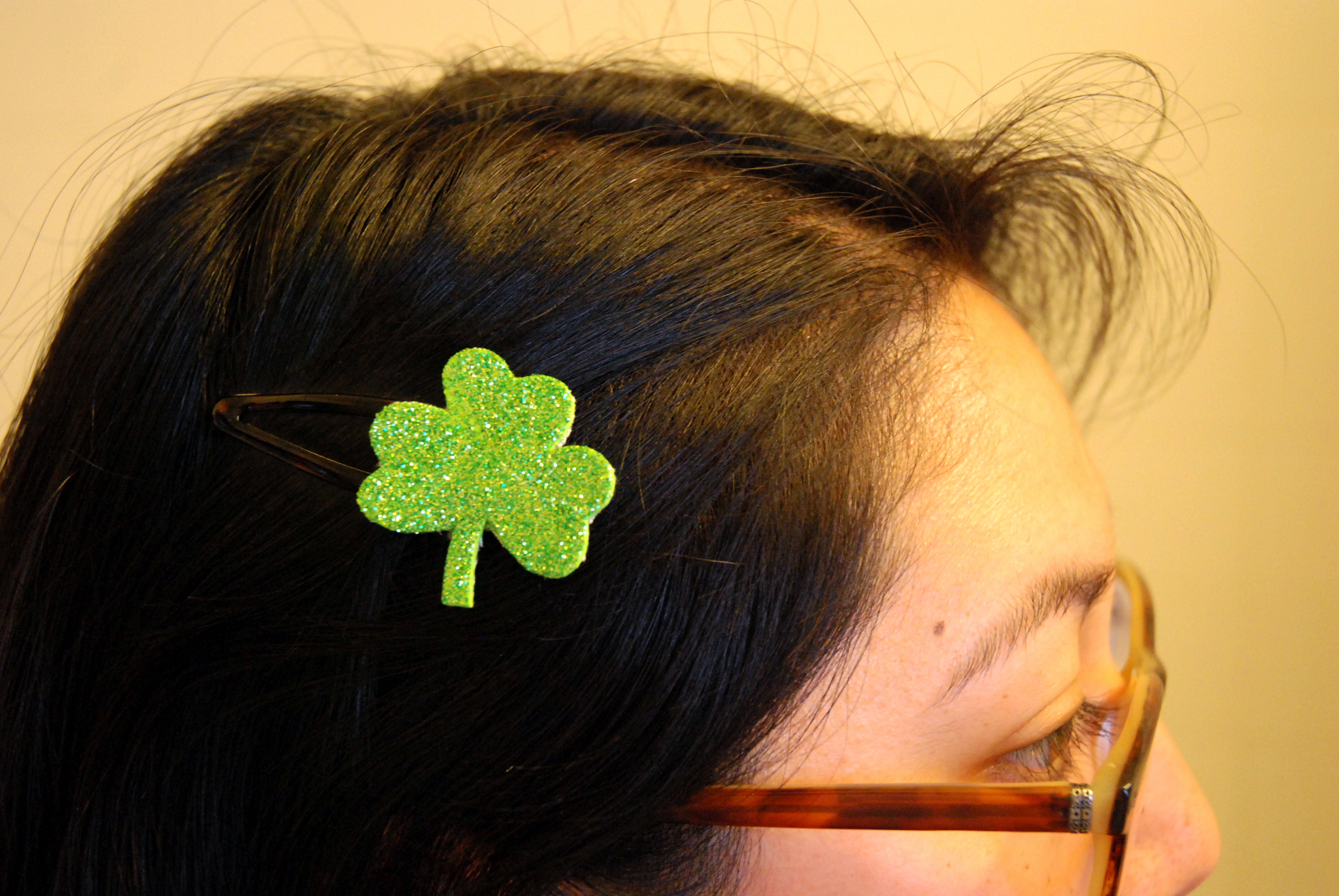 Oh, I just had to slide one more super fast and easy project for St. Patty’s Day. Green is not a very common color in my wardrobe, so I like to have something really easy on hand to wear to avoid being pinched and still be festive in a very low commitment kinda way.