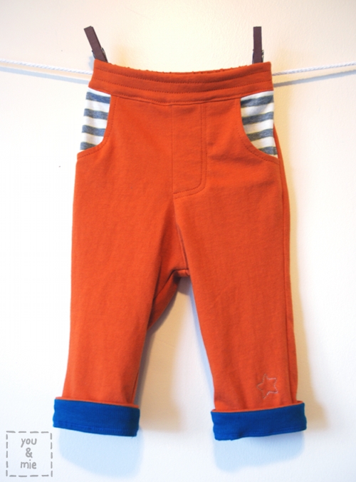 So I’ve gotten a little behind on blogging.  Today is day 4 of KCWC, but I’m blogging what I made yesterday on day 3.  Yesterday’s project was a pair of pumpkin orange knit pants.  They are meant to be skinny in the legs, but they turned out pretty baggy everywhere else.  I guess it’s good that they are loose enough for her to move around in.