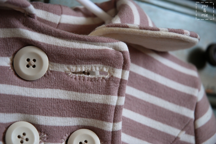 This is my favorite thing you’ve sewn! I will have to remember to sandwich fleece in between knit. What a great idea! I love that stripe and the pattern. Also you button holes look a million times better than mine.