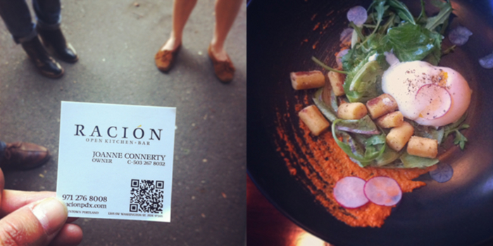 I just wanted to mention also that the restaurant we went to that night, Ración, was incredible.  They are new in Portland (2 months, I believe) and are just getting settled, so I feel like I should help spread the word – if you are ever in Portland and looking for a really nice place to go to – check this place out.  The food was TO DIE FOR.  The people were really fun and friendly.  And they really took care of us and I’d love for them to be successful (and I’m quite certain they will be!), but yeah – a shout out to them!