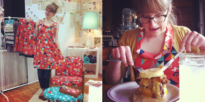 3. Be true to yourself and don’t lose sight of why you are creating.  My last night in Portland, Kristin and I were invited to this phenomenal dinner at a new restaurant called Ración with a group of great fabric shop owners.  We ended up sitting with and being part of a truly amazing conversation with Liesl & Todd of Oliver + S, Keli of Drygoods Design (online and in Seattle) and Margaret of Form and Fabric (online and in Austin).  These are some seriously smart and passionate people and I just felt so lucky to have been able to witness and participate in such an honest and exciting conversation!