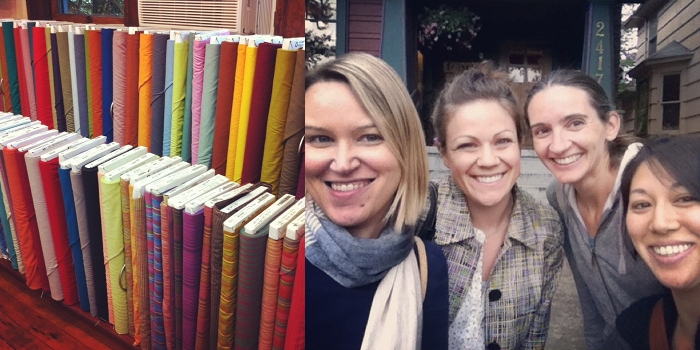 I got to meet Robin of Nested in Stitches and Gail of Probably Actually – both super awesome gals.  I also hit up 3 fabric stores in Portland: Bolt, Modern Domestic and Cool Cottons.  I bought fabric at all three places that you’ll see in upcoming projects.  The pic above is from Cool Cottons – they had every. single. color. of shot cotton!!
