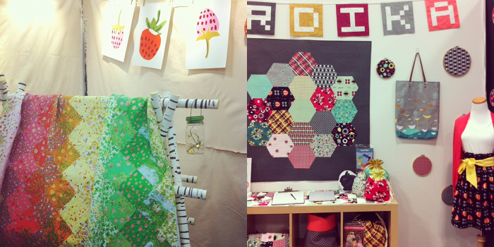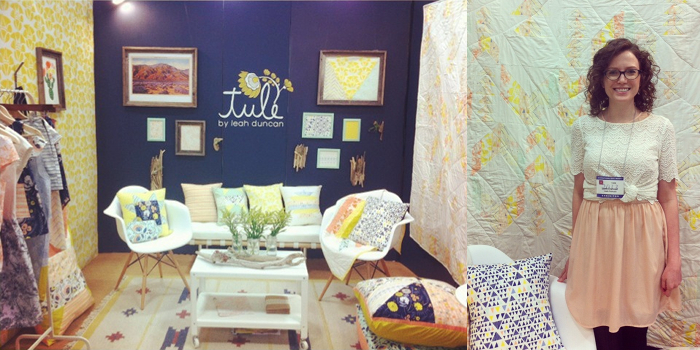 My other favorite booth/artist was Leah Duncan.  This girl is a super talented artist and so adorable too!  I first learned about Leah back when I sewed this Jump Rope dress in some of her fabric and she saw it on Pinterest and emailed me to ask if she could post a picture of it on her blog.  I poked around her website and blog and LOVED her work.  She does amazing work and I love the colors and really organic vibe of her illustrations.  Her upcoming fabric line with Art Gallery is called Tule.  Can’t wait to get my hands on some!