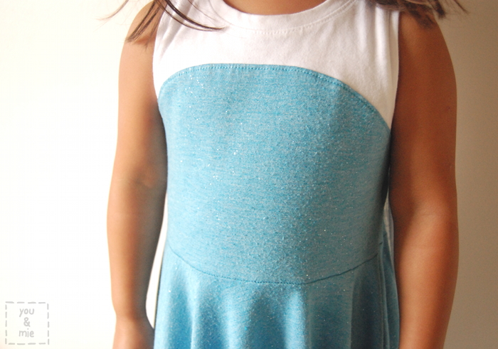 And why not an open back for fun?  You may be thinking this detail looks familiar, and that it is, perhaps, the distinct feature from the Soleil Dress and you’d be right!  Well, I made the Color Blocked Soleil Dress back in May and Yuki looooooves it.  So I thought it would be a fun way to mix up the idea of an open back summer dress with some key elements of Elsa’s dress to make something appropriate for our date with the Snow Queen herself in the middle of a sweaty Florida summer.  So I took the bodice of the Soleil Dress to start with and mashed it up with a bunch of other ideas.  And hey!  I even finished the neck and armholes correctly (after doing it completely wrong the first time around).