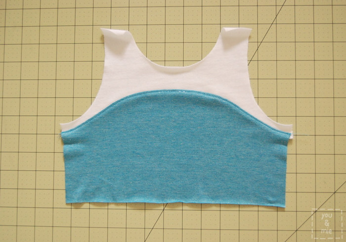 Finish assembling the bodice as directed, except you’ll want to place the bottom back bodice piece over the top piece.