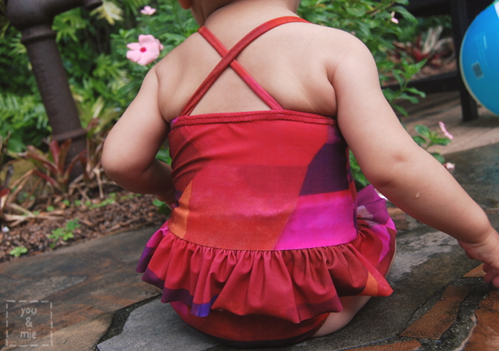 5. wow – you scored some amazing fabric! I totally understand why you got it, despite its price. And when you get a half yard and get two suits from it, even better:) love them both, but the peplum version is killing me with its cuteness! And congrats on Yuki’s milestone swimming:)