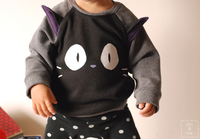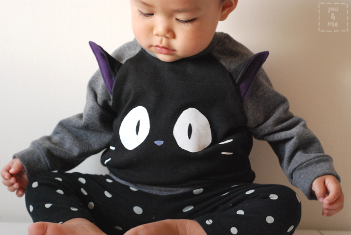 I just thought this Jiji sweatshirt would be a fun thing to make and wear.  It features Jiji’s unique ears and huge eyes, though you may not recognize him if you’re unfamiliar with the movie.  The shirt is based off of my Panda Raglan Tee Tutorial and I used the Oliver + S Field Trip Raglan T-shirt Pattern.