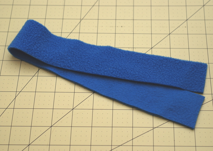Cut two hood pieces.  You’ll also need a strip of fabric that is 4 inches wide.  To determine the length, measure the bottom edge of the hood, multiply that by two and then add about 4 inches.
