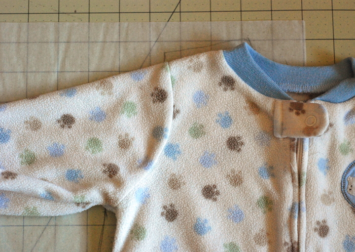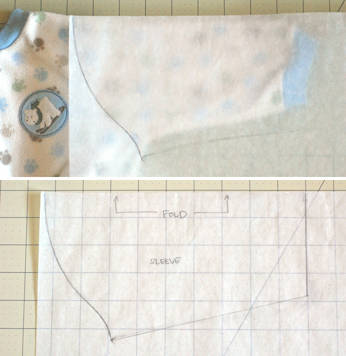 Use your pajamas to trace the sleeve shape adding seam allowance and an extra 3/4″ for hemming.