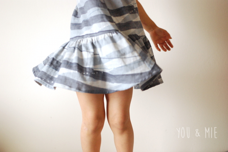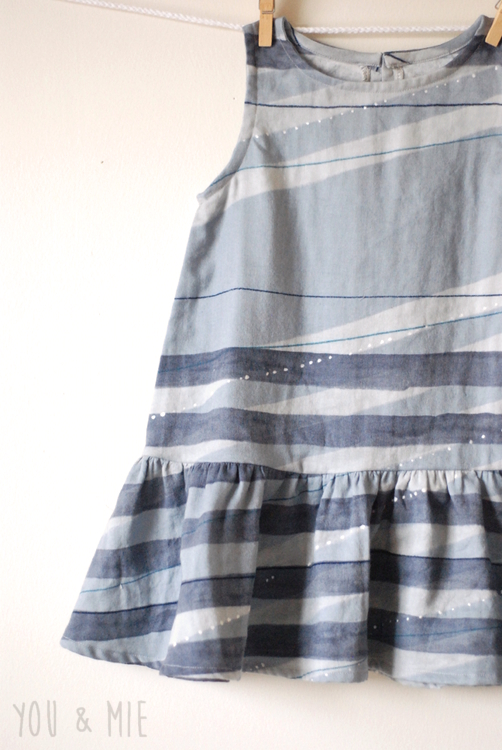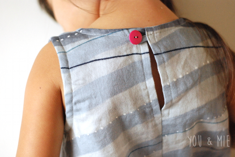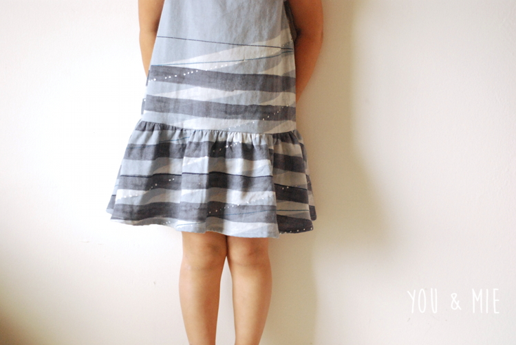 I love the silhouette too. It’s just so simple and classic. The dropped waist makes it loose in the hips and waist, so you really only need your child’s chest measurement to determine the size. I made the 3 for Yuki. It fits really well except it’s a little on the short side. Looks great when she’s standing, but when she raises her arms or is playing, it’s too short. Luckily she always wears leggings, so it’s not a problem, but I’ll probably lengthen it next time.