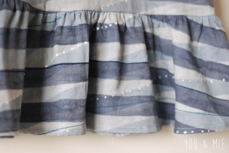 The pattern, by Mingo and Grace, is great. Really simple as far as dress construction goes. Front, 2 back pieces, bias to finish the arms and neck, button closure and ruffle skirt. As much as I love the clean look of zippers, I’m a big fan of easy button and loop closures too. I’ve got tons of buttons on hand, so it was nice being able to just cut it up and sew it. No special notions necessary.