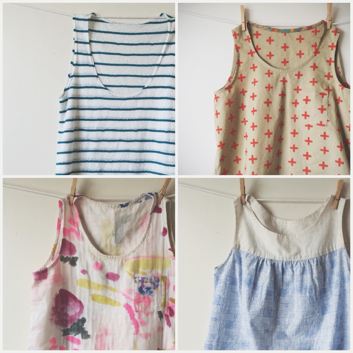 • Thanks! I don’t know much about buying inexpensive materials, except there are a few discount fabric places locally (in San Francisco) and of course, Jo-ann. I did make the four tank tops in the pic above. Good luck to you!!