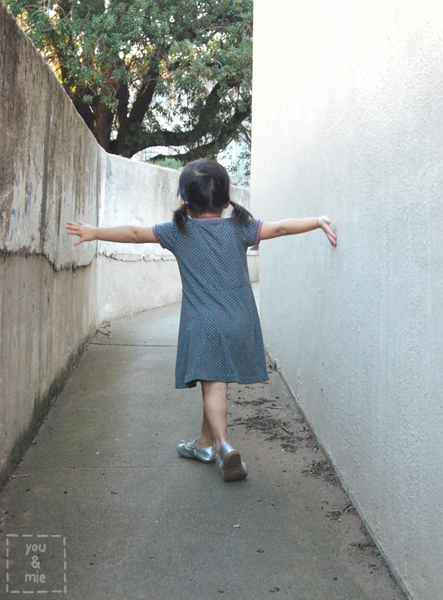 So last week, I did a guest post for sewpony‘s series “When We Were Young” and I shared an outfit that I made for my daughter that was inspired by an outfit that I wore when I was young! I also mentioned that I’d post a tutorial for the simple pinafore, so here I am, being true to my word.