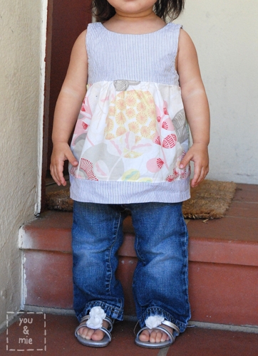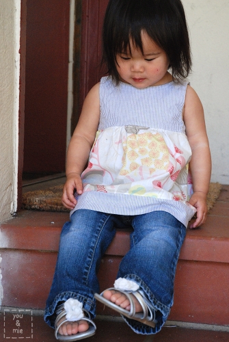 The top is made of white linen, which at the time seemed like the perfect simple breezy summer top. But now I’m kicking myself wondering what I was thinking! A white top for a messy, dirt-loving toddler made of linen, the most wrinkly fabric ever? Awesome job, Cherie. Nice. So I’ll let you choose whatever is appropriate for your kiddo.