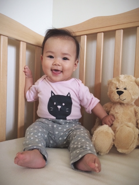 I got this striped fabric at Ikea a couple of years ago and used it as a table cloth for a party. It’s been sitting in my stash since then and every once in awhile Yuki would point to it and say that she really liked it. But since it wasn’t suitable for clothing, I didn’t know what to do with it. This turned out to be the perfect project for it!