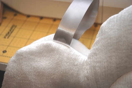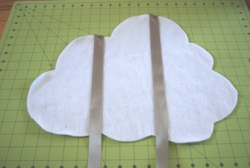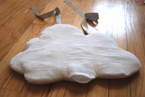 Try it on your model and mark how long you need the straps to be. Trim your ribbon, fold the edge under and sew it to the back of the cloud.