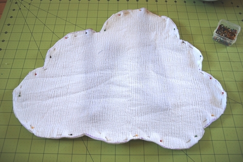 Lay the outer layer right side DOWN, being sure to tuck all the ribbon inside the cloud. Pin the layers together.