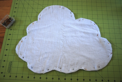 Sew around the cloud leaving an opening in the bottom. Snip each point close to the seam.