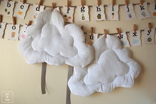 Hand sew the opening shut. Quilt the cloud however you like to hold the filling in its place.