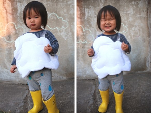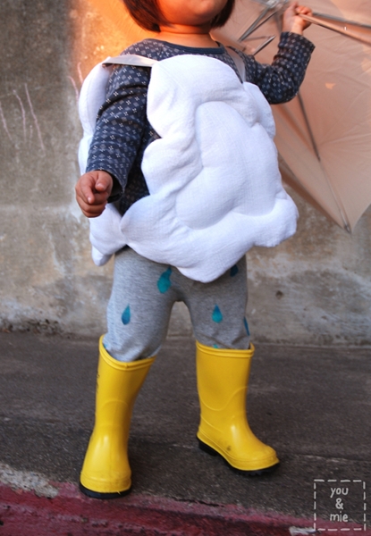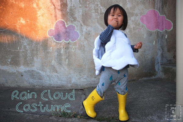 Over the last several years I’ve made quite a few costumes including a Totoro costume for my daughter (it was a big hit!) and several others you can see here, including Russell from the movie, Up. But I’m a total procrastinator and also super indecisive, so I haven’t even started figuring out what my daughter, Yuki, will be for Halloween this year. So in the meantime, I thought I’d whip up a simple costume using only materials I already had a home. Presenting . . . the Rain Cloud costume!