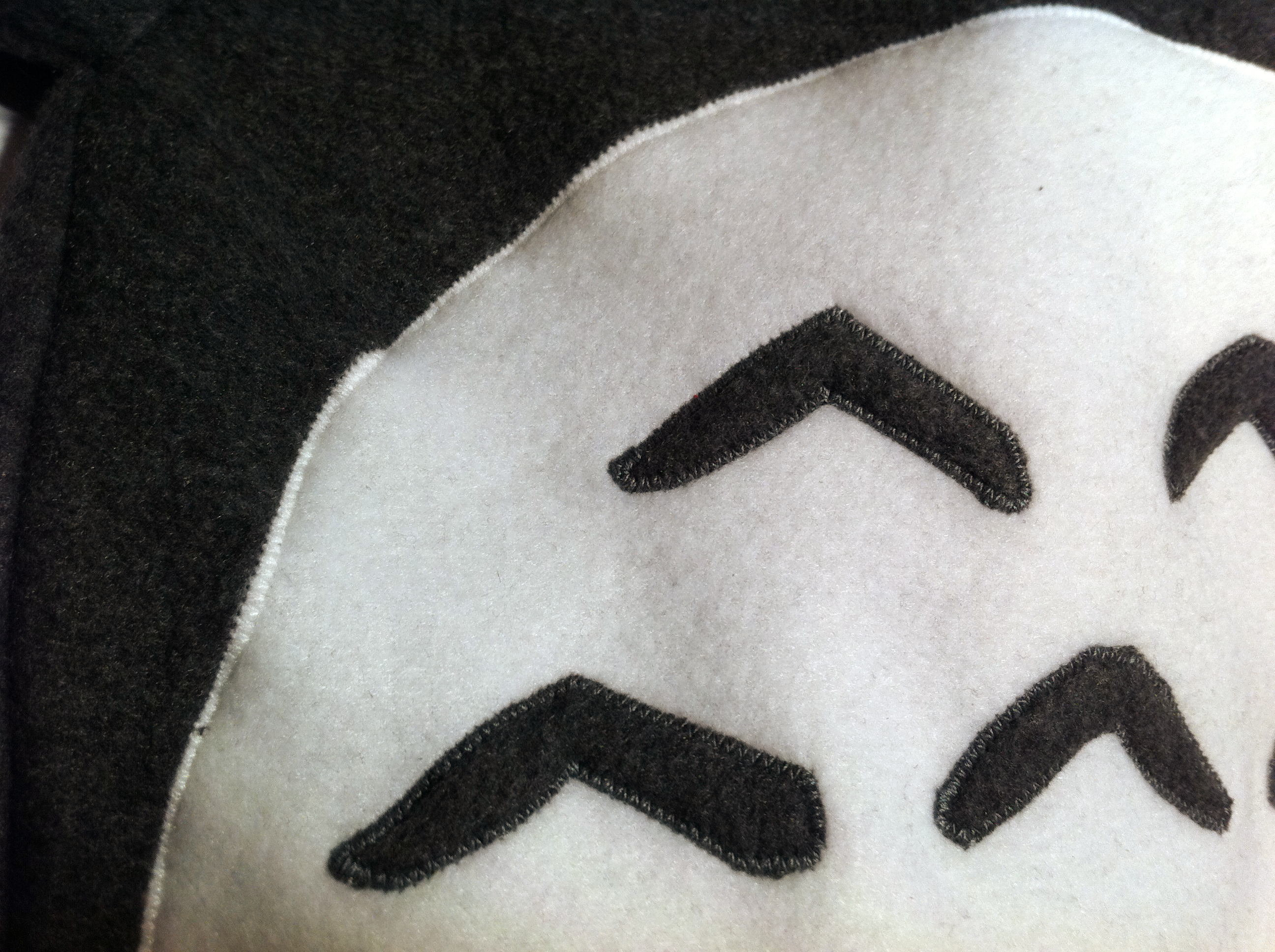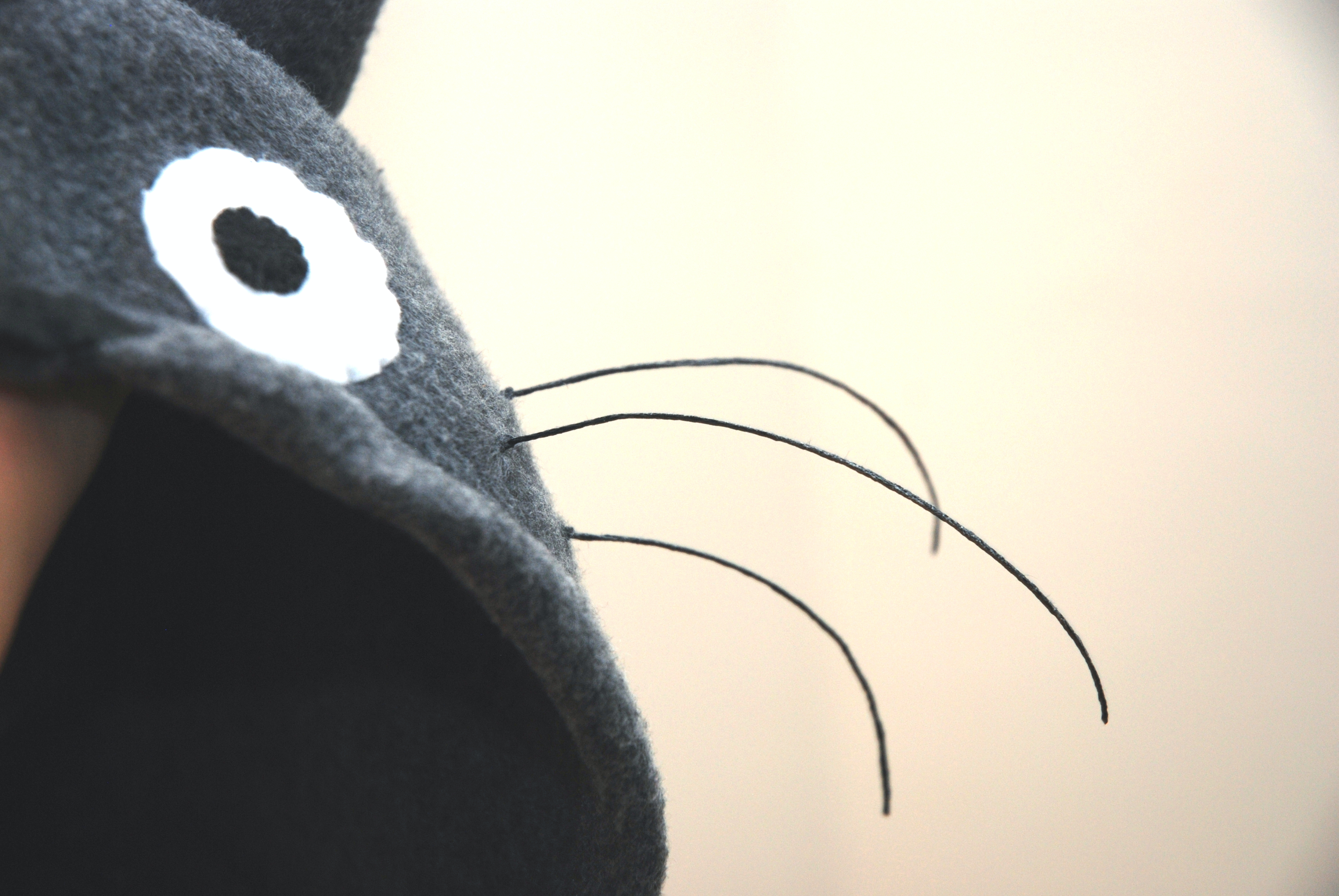 I also made the little white chibi Totoro right before our photo shoot out of some scraps of white fleece (from the original Totoro costume!) and tied little pom poms to her hair rubber bands to match Mei’s.
