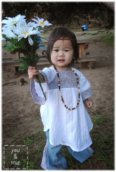 The thing about a good Oliver + S pattern is that it is pretty tedious and takes a lot of time. This, of course, results in a really high quality piece of clothing, but one of the things I love about making kids clothing is how quickly you can whip something up. That’s just me being impatient though. It’s really good that I’m learning how to do things the “right” way. I made the shirt in 2T size which is HUGE on Yuki, but that means she’ll be able to wear it for a long time. I used an embroidered white fabric just to make it a bit more interesting and added a button in the front just to make it look like the one in the movie. I’ll probably take it off since it serves no purpose.