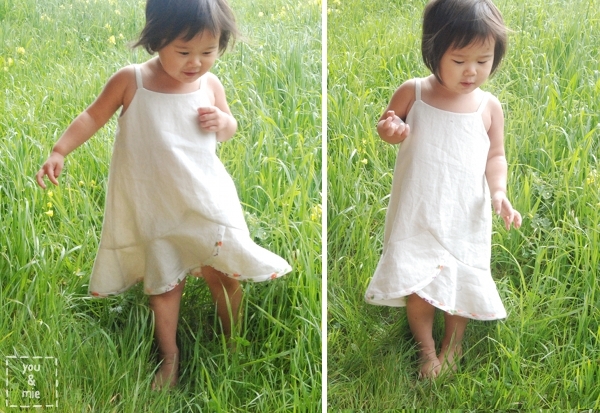 Unfortunately, I didn’t take any pictures, so I can’t show you all of the little projects that I worked on, but as I collect pictures from friends and family members, and of course, the professional photographer, I may be sharing some of those with you. My only big sewing project for the wedding was Yuki’s flower girl dress. Since I didn’t get any pictures of her during the wedding, I made her put the dress back on yesterday and quickly snapped some new ones. Amazingly enough – she really likes the dress! She wore it for 9 hours straight on Saturday and never once complained or asked to take it off! And the truth is, I like it too!