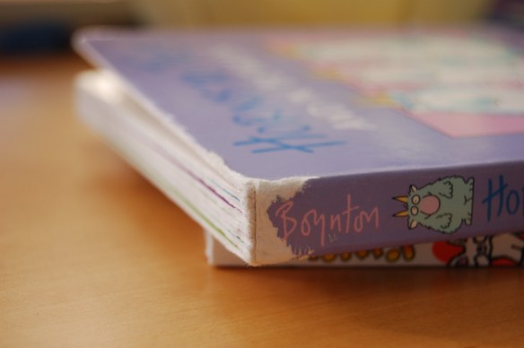 I thought of the idea back when Yuki was very young and a bunch of things kinda came together. 1. Although we loved reading her books, they didn’t stay nice very long. Yuki would bite off pieces or rip them out with her hands. Despite our best efforts, most of our books ended up looking like this . . .