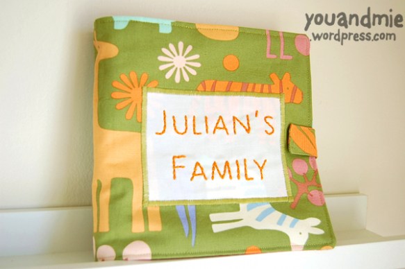The next photo book I made was for a friend’s son, Julian. For this book I used printable cotton (instead of iron on transfers). It’s fabric that feeds through your printer and you can print directly on it. Then you can iron them on to something or sew them and they are permanent! I really like the results. The images are sharp and the fabric is very sturdy.