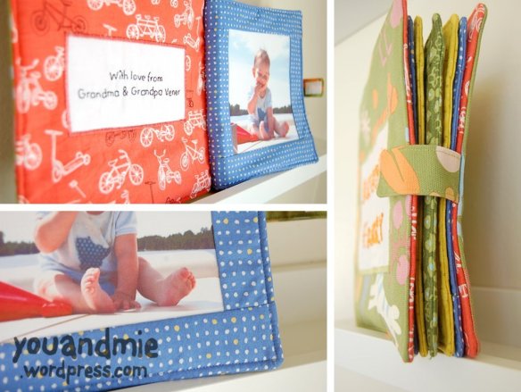 The rest of the book was just kinda made up as I went along. I cut strips of fabric and made borders around the photos. I sewed all the pages together with an embroidered cover and a velcro closure. It came out exactly how I imagined it to be. I was so pleased!