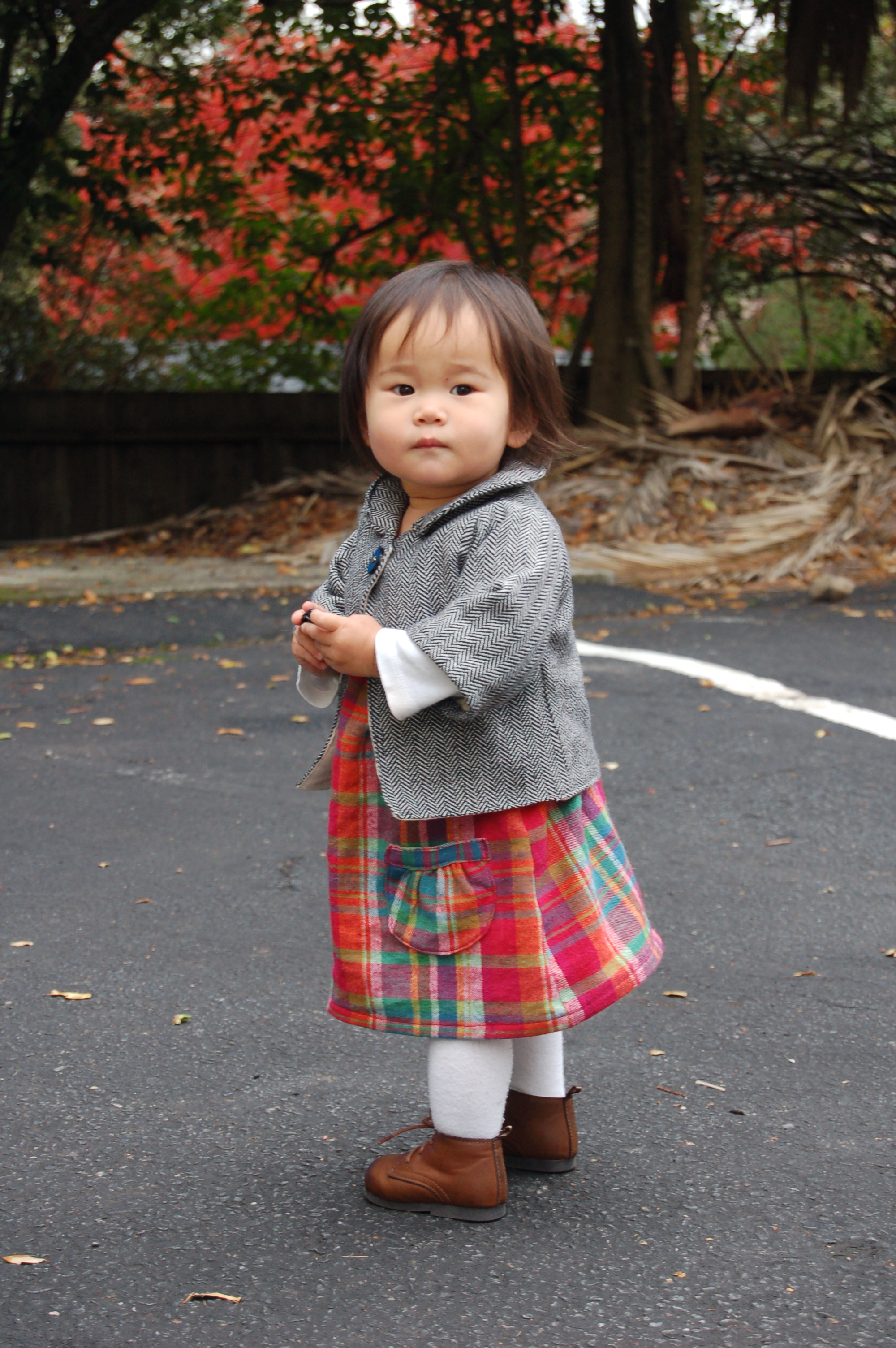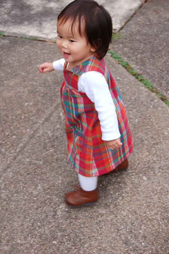 So last week, I did a guest post for sewpony‘s series “When We Were Young” and I shared an outfit that I made for my daughter that was inspired by an outfit that I wore when I was young! I also mentioned that I’d post a tutorial for the simple pinafore, so here I am, being true to my word.