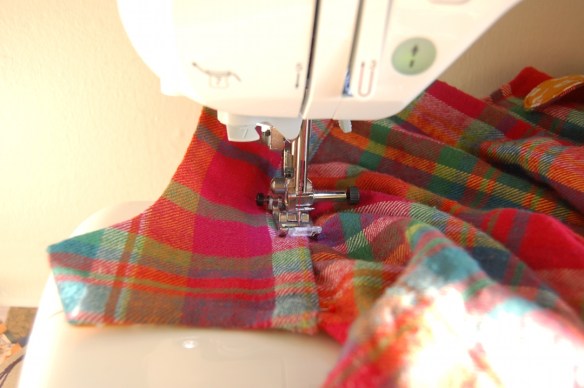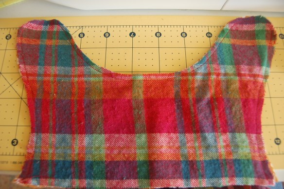 I didn’t photograph the next step, but place the other bodice piece on top, right sides together (with straps and collar sandwiched in between) and pin. Sew the bodice pieces together along the sides and top of the bodice (leaving the bottom edge open) using a 1/2 inch seam allowance. Trim seam allowance down to a 1/4 inch and clip corners. Flip right side out and press.