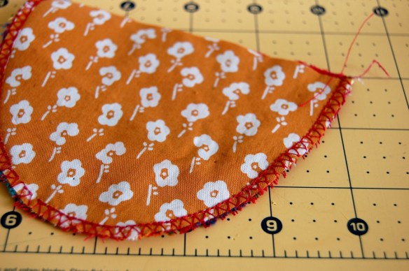 Because I was trying to replicate the pocket in the original photo, I needed a triangular piece. I cut my lace into a triangle and then serged the edges to finish them. I did kind of a crappy job.
