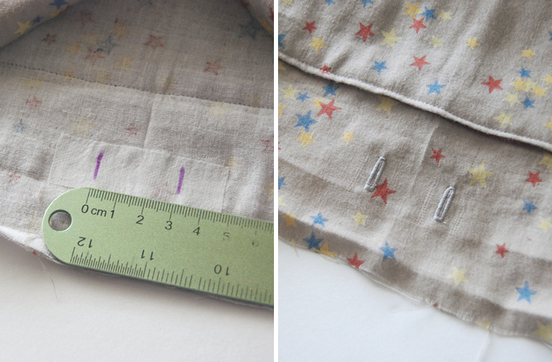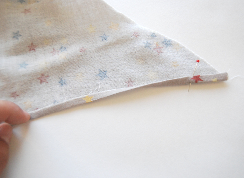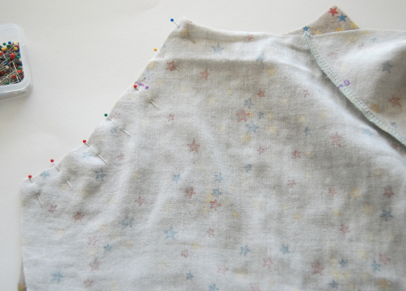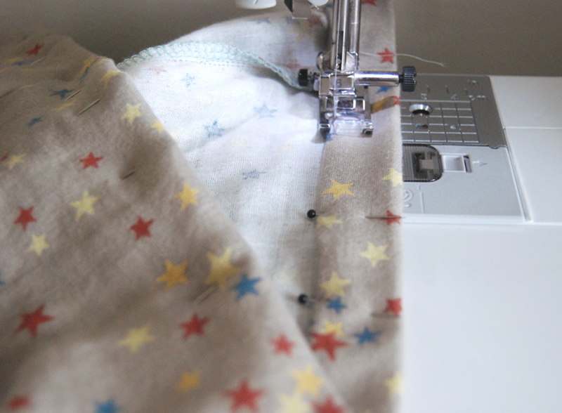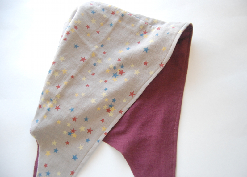 The lining and drawstring were made with double gauze that I bought from Imagine Gnats. It doesn’t actually match the color of the red stars, but close enough!