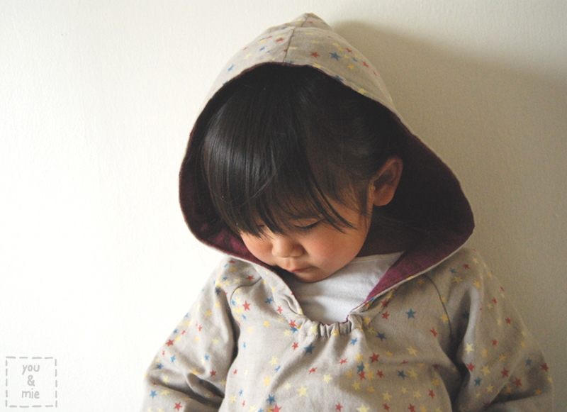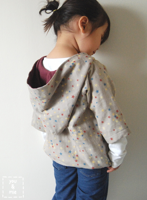 The main fabric I used is double gauze that I bought at Bolt back when I visited Portland in 2013. I’d been saving it for who knows what. I have to say, I LOVE the way it looks as a hoodie, but part of me is really sad because I don’t think Yuki will wear this and I really really love the fabric. The first time she saw the hoodie she said she liked it. Then when it was time to put it on she said she didn’t like it. When I said that it made me a little sad to hear that since I had worked so hard to make it for her, she said, “Well, I LIKE it, I just don’t want to wear it.” 😦 Hah!