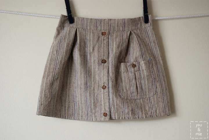 Almost done! Hand sew buttons into the back of the skirt catching only the inside of the waist band (not the elastic or the outside of the skirt).