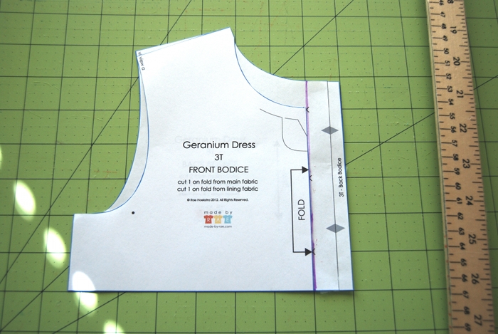 I started out with Made by Rae’s Geranium Dress pattern for my bodice because it’s the pattern I’ve been using for dresses recently, but you can use pretty much any basic bodice pattern. I went up one size because this is outerwear and I want it to fit over clothes, so instead of 2T which my daughter usually wears, I cut out the 3T size bodice pattern.