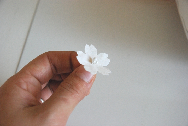 Set the hoop aside to dry and cut your felt into 4×4 inch squares. You’ll need 6 white ones and 4 black ones.