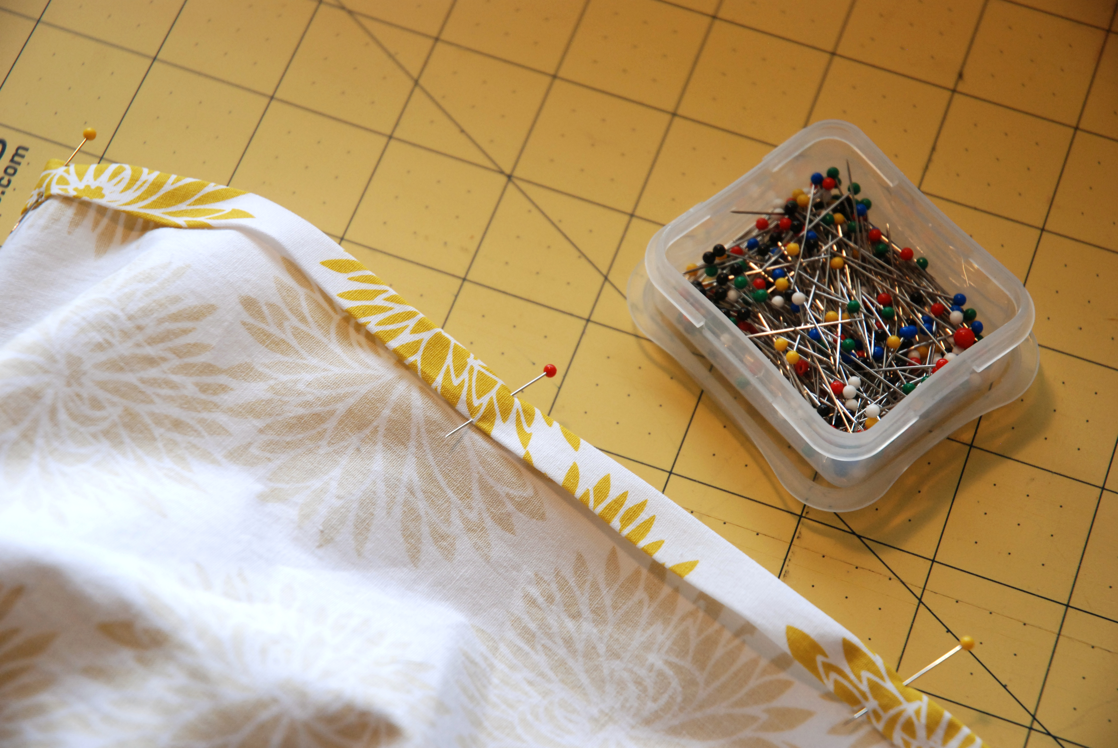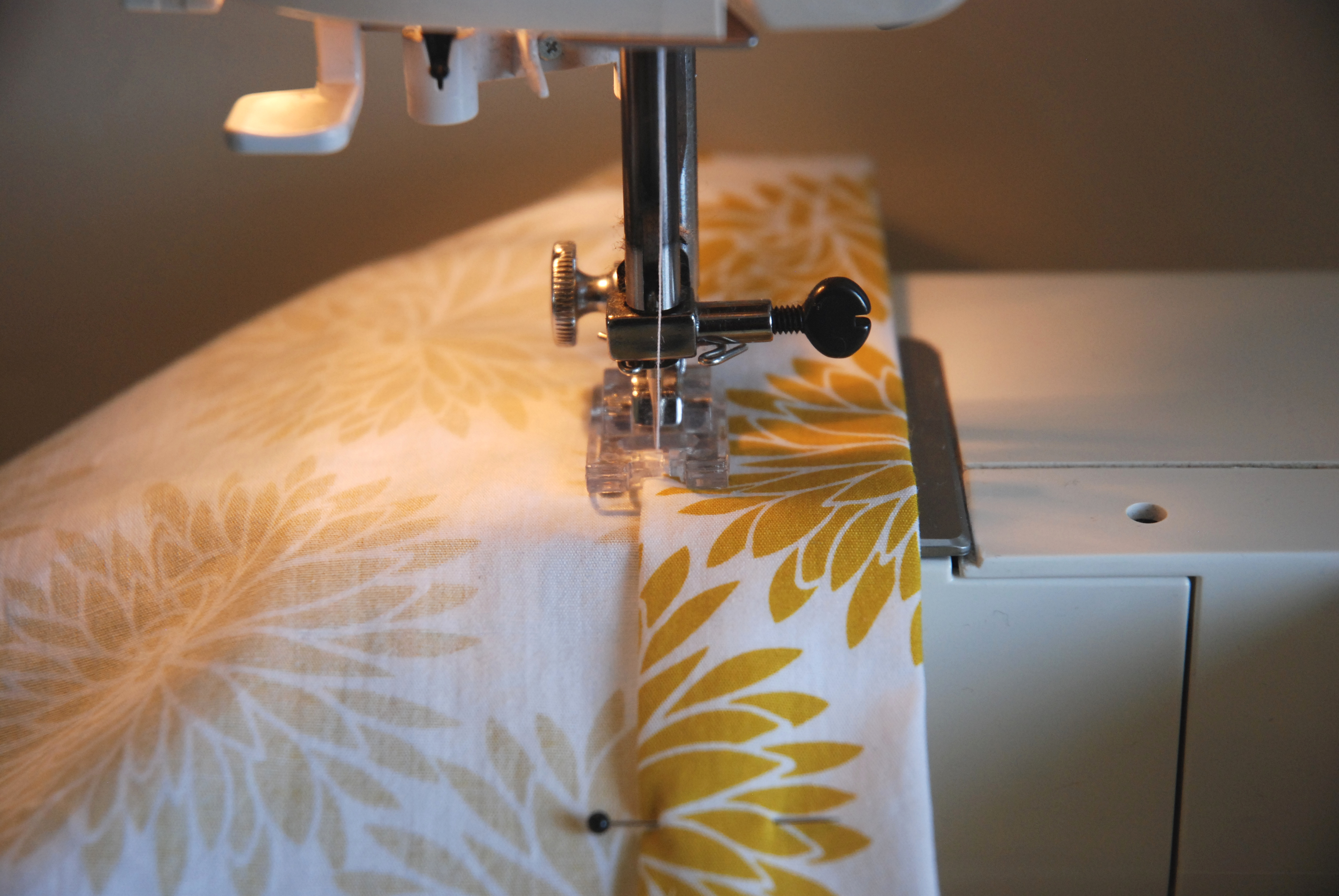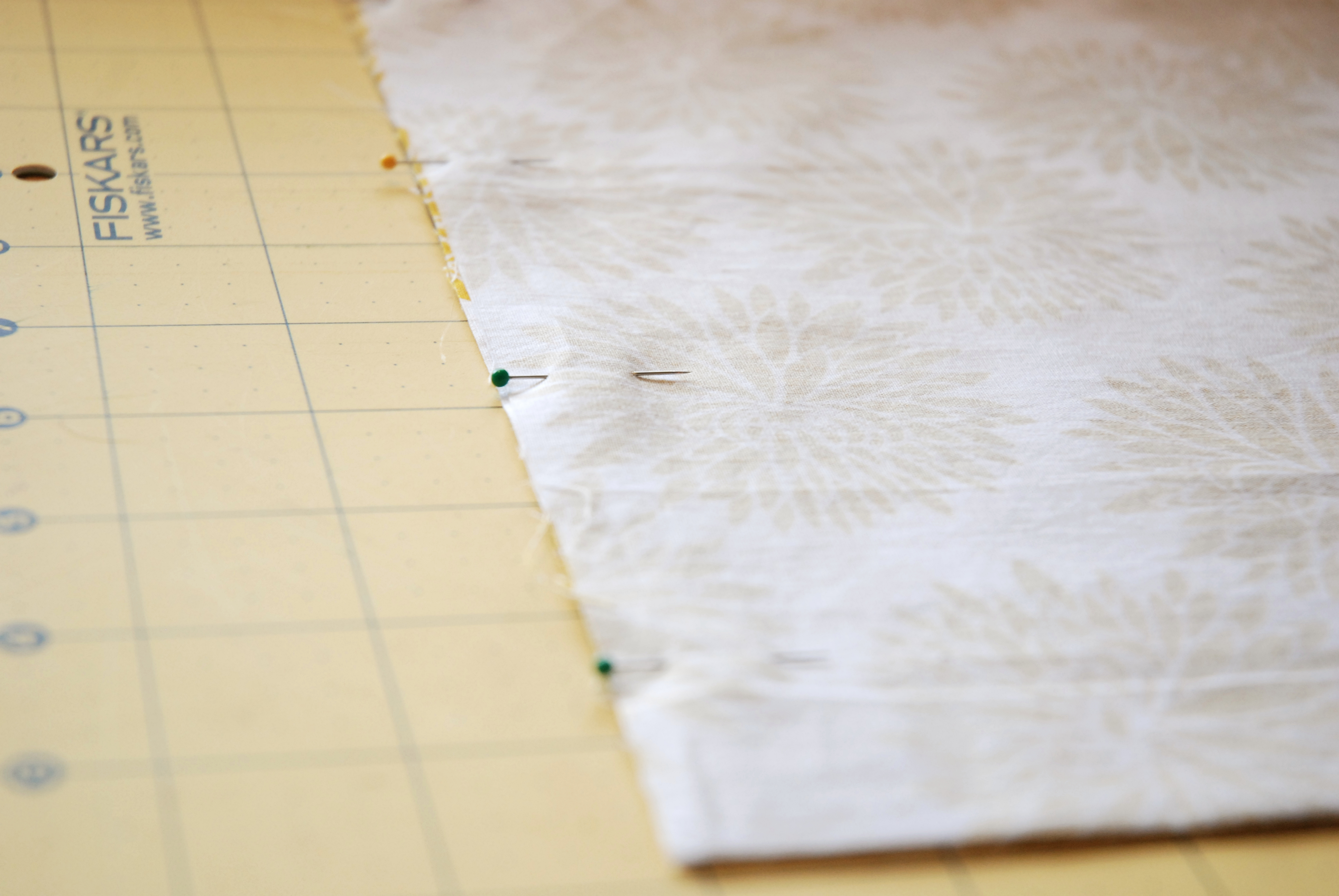 Make sure the white fabric is folded in half with right sides together, pin and sew up the short end.