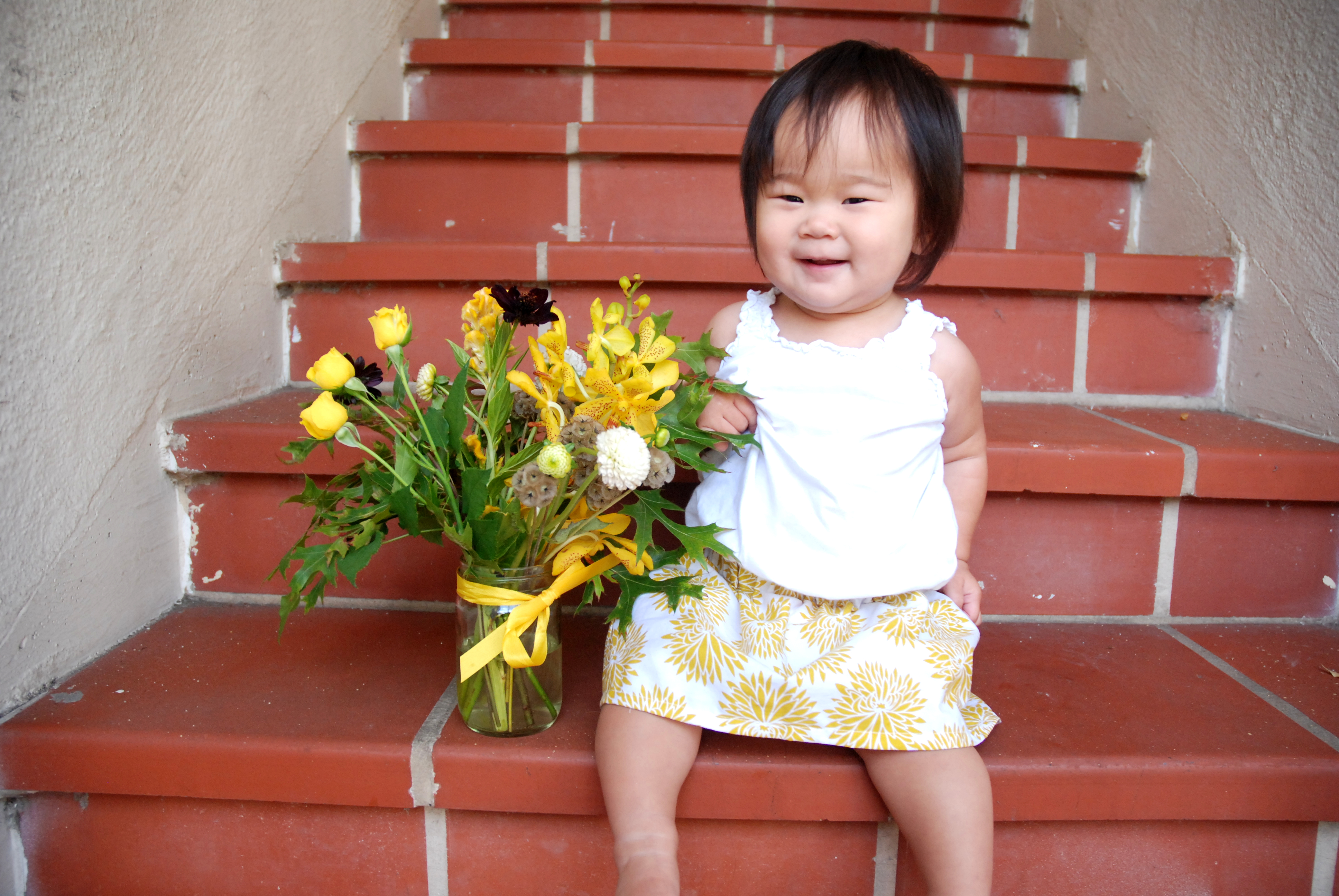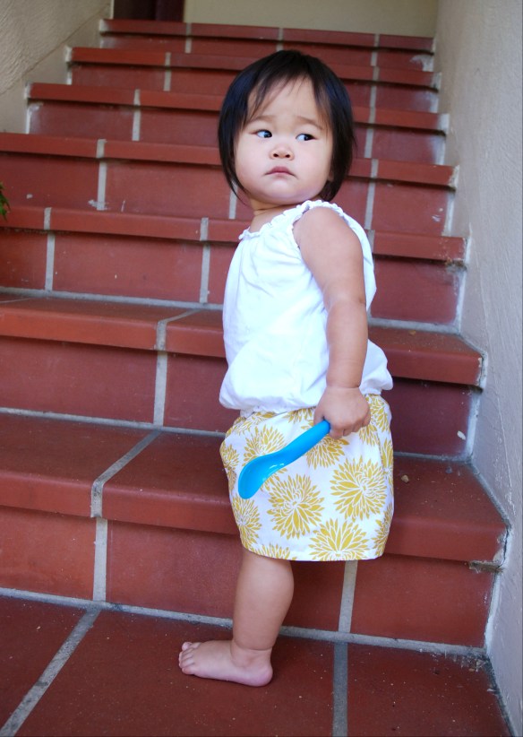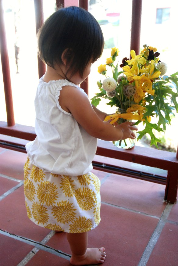 This skirt reminds me of something you’d wear to a tea party or something. But all our lil’ tomboy wants to do is climb things and play with dirt and rocks. That’s our girl!