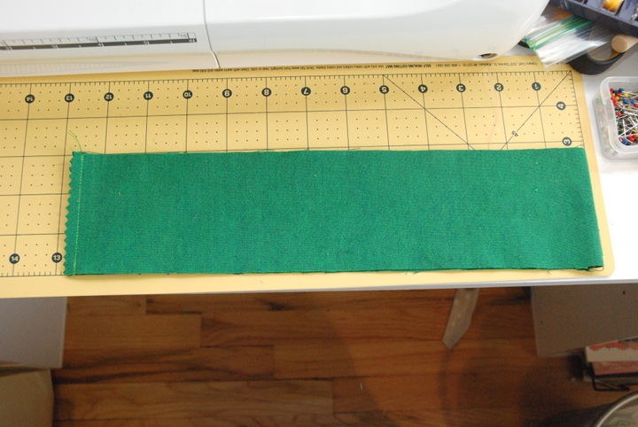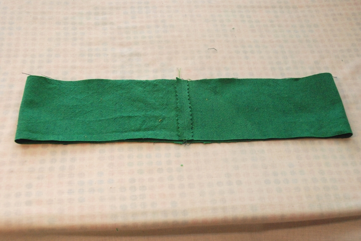 Now to create your waistband, fold your strip in half, and sew the ends together to make a loop that is the same as the width of the skirt.