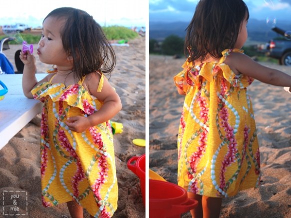 Anyways, my mom had brought me some fabric from Hawaii from one of her previous trips (her family is partially from Hawaii so she goes every year) and I decided it would be the perfect opportunity to use some of it. I wanted to make her a little dress to wear on the beach so we could pretend she was a little Hawaiian girl (like a little Hawaiian girl would be wearing a dress like this, while her weirdo mom snapped a bunch of photos of her on the beach – yeah . . . not a tourist at all).