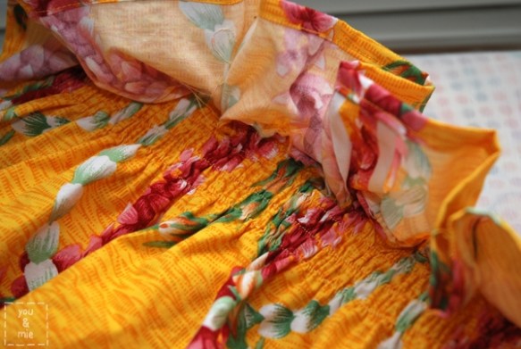 The construction of this dress is a little funky. I made it right after I made my Washi in Blue and I was super pumped about my mad shirring skills, so I was determined to use them here for the bodice. But then I decided I wanted to add a ruffle around the top too and that’s where it all got crazy. If I had planned on doing the ruffle from the beginning, I probably would have just done a simple elastic casing, but since I didn’t really think it through, I tried to shir a bunch of ruffled layers together and let me tell you, it doesn’t work. So that’s why the top of the dress is a bit wavy, but overall I got the little sundress I imagined.