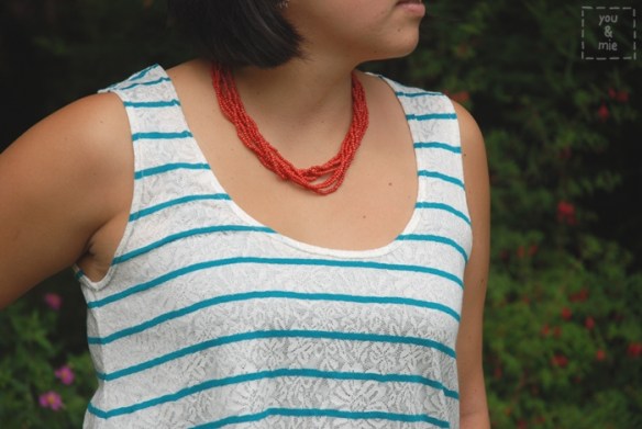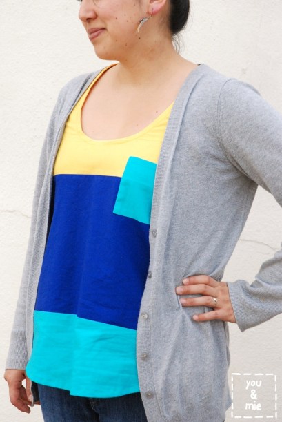 I got the idea to make this tank after seeing this one from Old Navy. I copied it almost exactly in style except I made an inverted pleat instead of a box pleat at the neckline. I don’t know if it’s the most flattering top because it doesn’t have a tight fitting bodice. But it’s comfy and I know it’ll fit for awhile, possibly through my pregnancy.