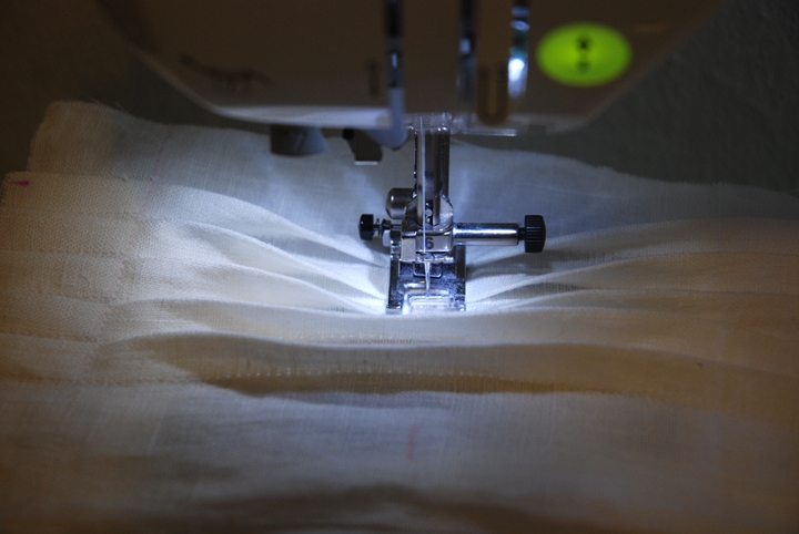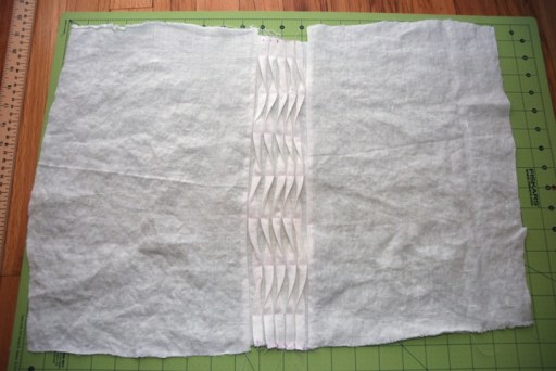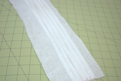 Bring the two outer markings in towards the center, pin and press. Sew a basting stitch across the pleat to hold it in place.