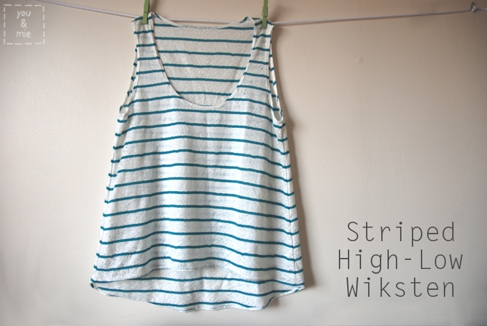 The fabric I used is Star Pods in Green from designer Patty Sloniger for Michael Miller. I got it from Modern Domestic when I was up in Portland for Quilt Market. It’s a lovely chartreuse color and is really lightweight, so I thought the drape would be perfect for a top. I used the Wiksten Tank pattern as a starting point and I’m going to show you how I adjusted it to make this top. The Wiksten Tank is a great, simple tank top pattern that anyone can sew (you can see my previous versions here, here, and here). I recommend you add this to your pattern collection if you don’t have it. But if not, you can probably draft a pattern for this top using another pattern or a tank top you own with a similar cut. The only extra material you’ll need is some 1/4 inch wide elastic for the bottom of the tank.