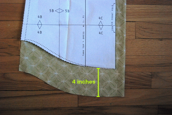 Alright, so using the directions, figure out your size and cut out your pattern. There were several adjustments that I made to my pattern. First I added 1.5 inches to the front piece along the “folded” edge. This will make the pattern 3 inches wider and give you room for that growing belly. I also raised the neckline an inch because I felt like the original was a bit revealing.
