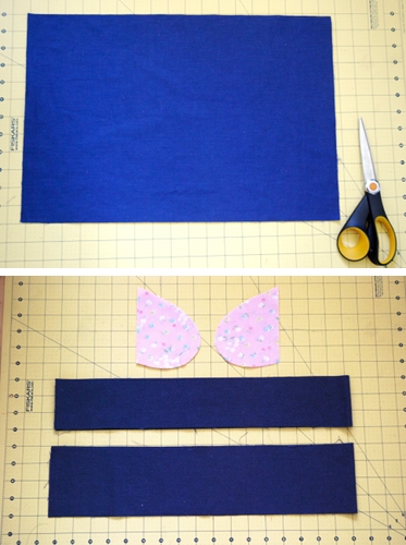 Make a pattern piece for the ears.  We will add a small pleat to the ear, so add a little width to the base and also 1/4 around for seam allowance.