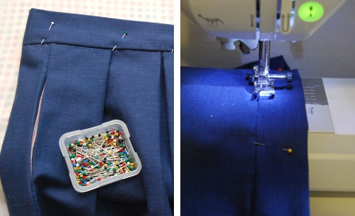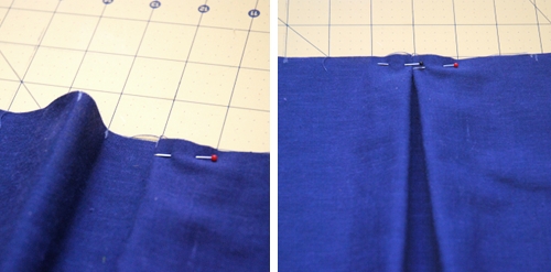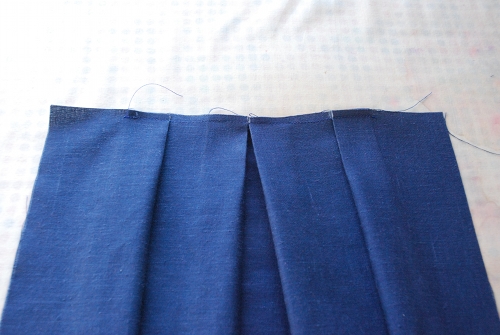 Add more pleats on either side, playing around with the size until your skirt piece the right size.  Press your pleats, pin, sew them down using a 1/4 inch seam allowance and press again.